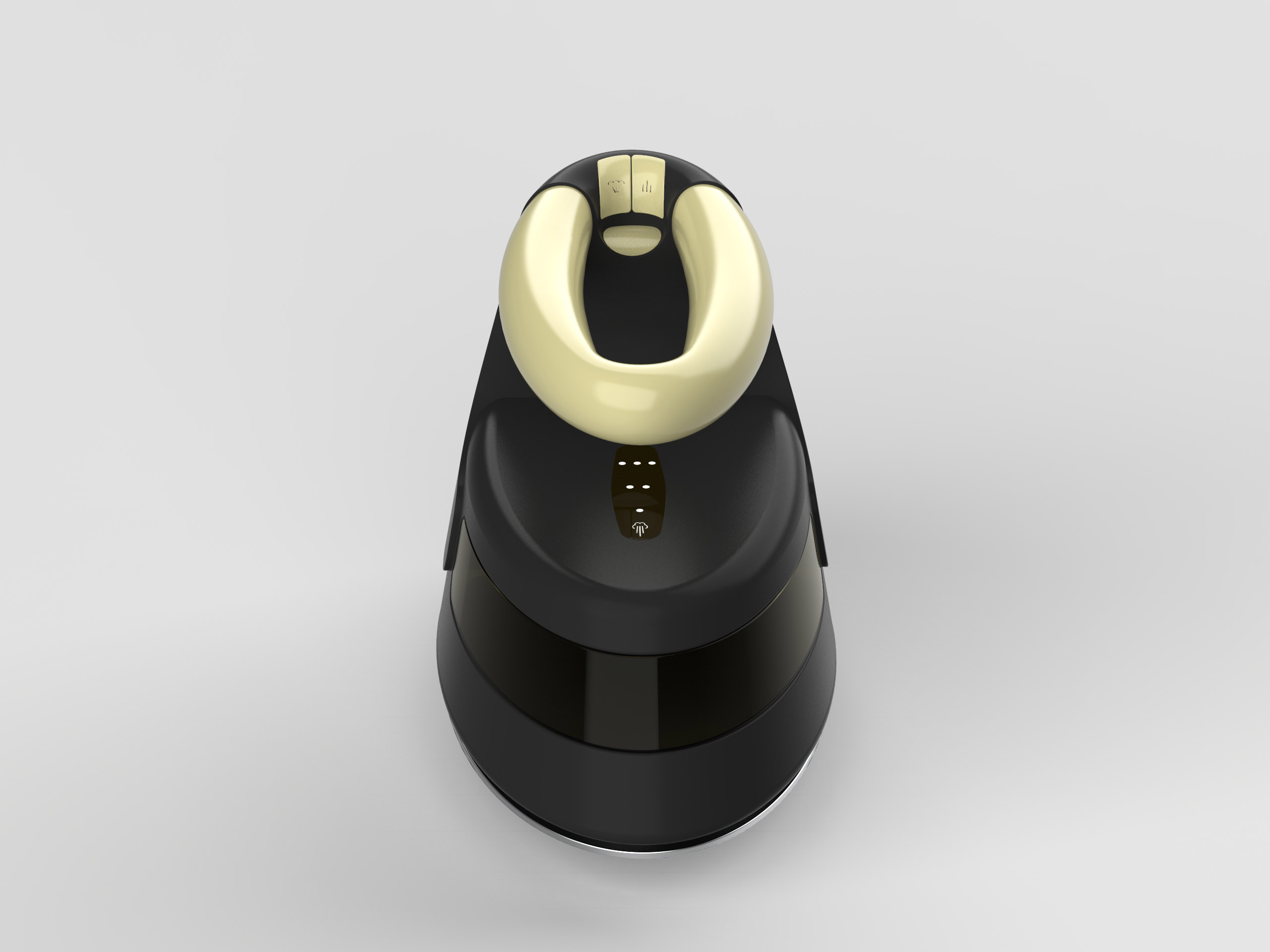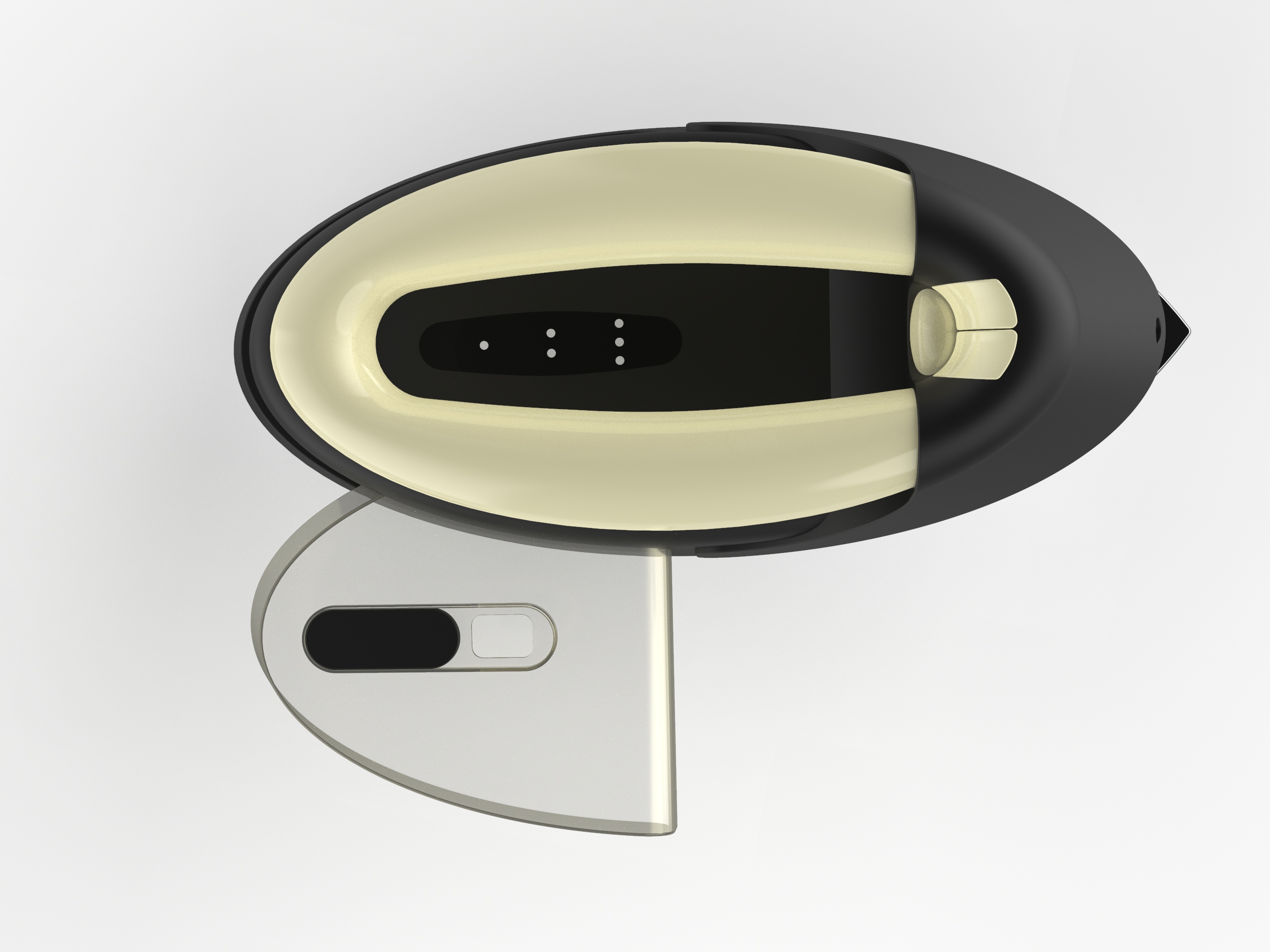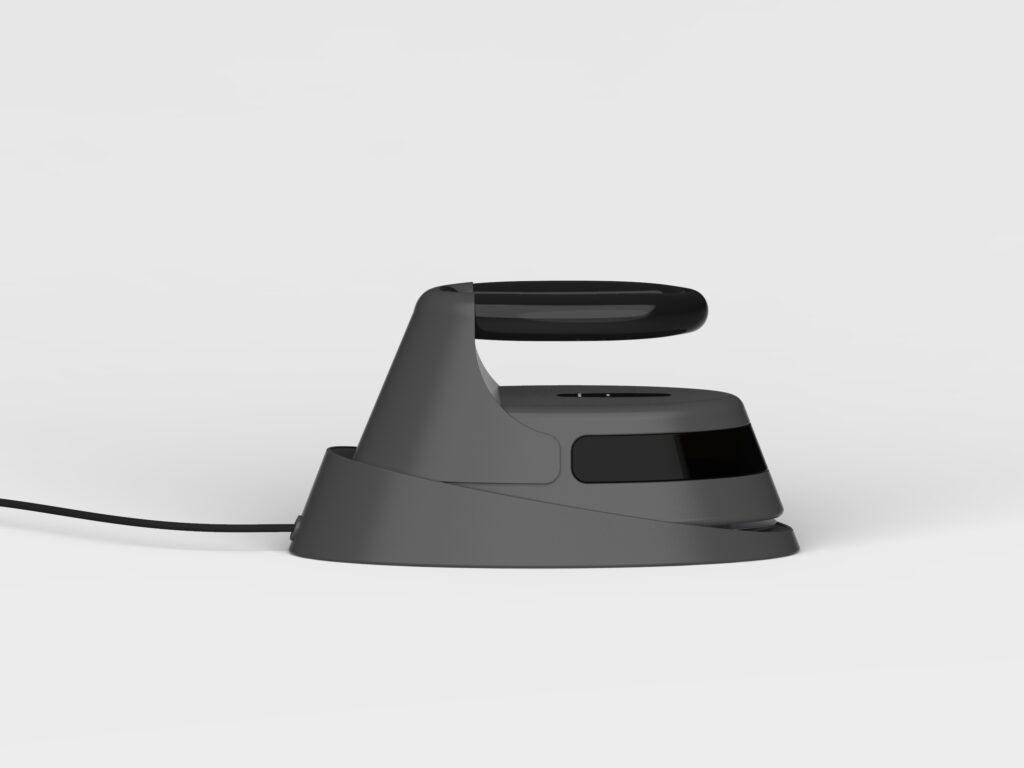 Concept Overview: The Oluna cordless iron is an innovative design that reimagines the traditional ironing experience. This concept integrates advanced technology and ergonomic improvements, aiming to enhance efficiency, user comfort, and functionality in a sleek, modern package. Design challenges are: integrating essential components into a unique oval shape and creating a realistic, producible concept suitable for current or near-future manufacturing.