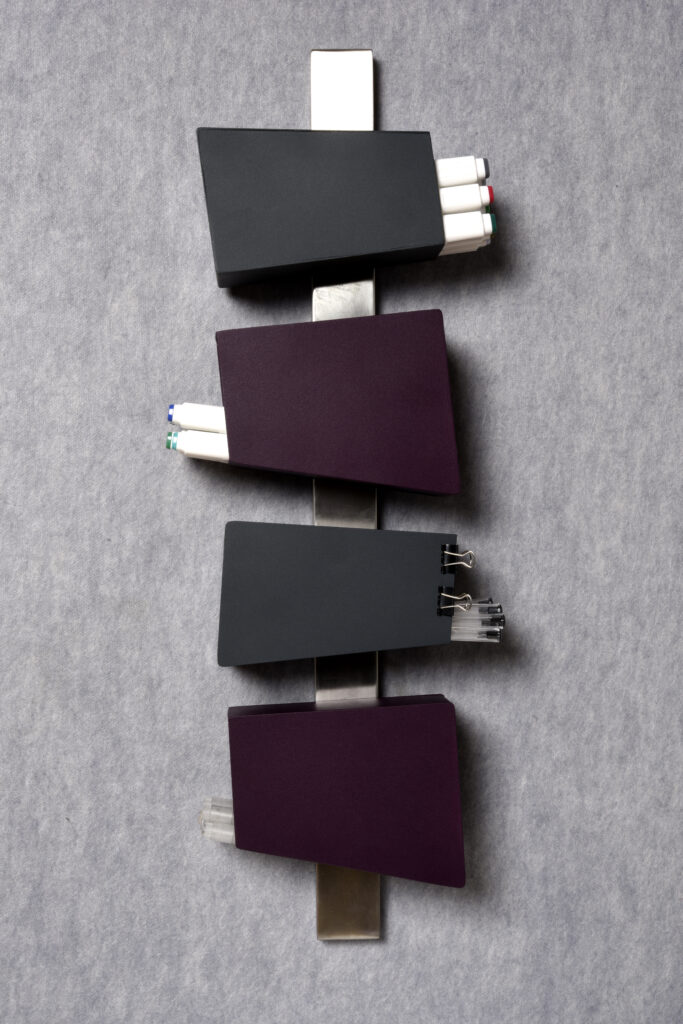 - With a compact footprint and the ability to be mounted on walls or desk sides using a magnetic strip, the pen holder maximizes workspace efficiency by minimizing clutter.