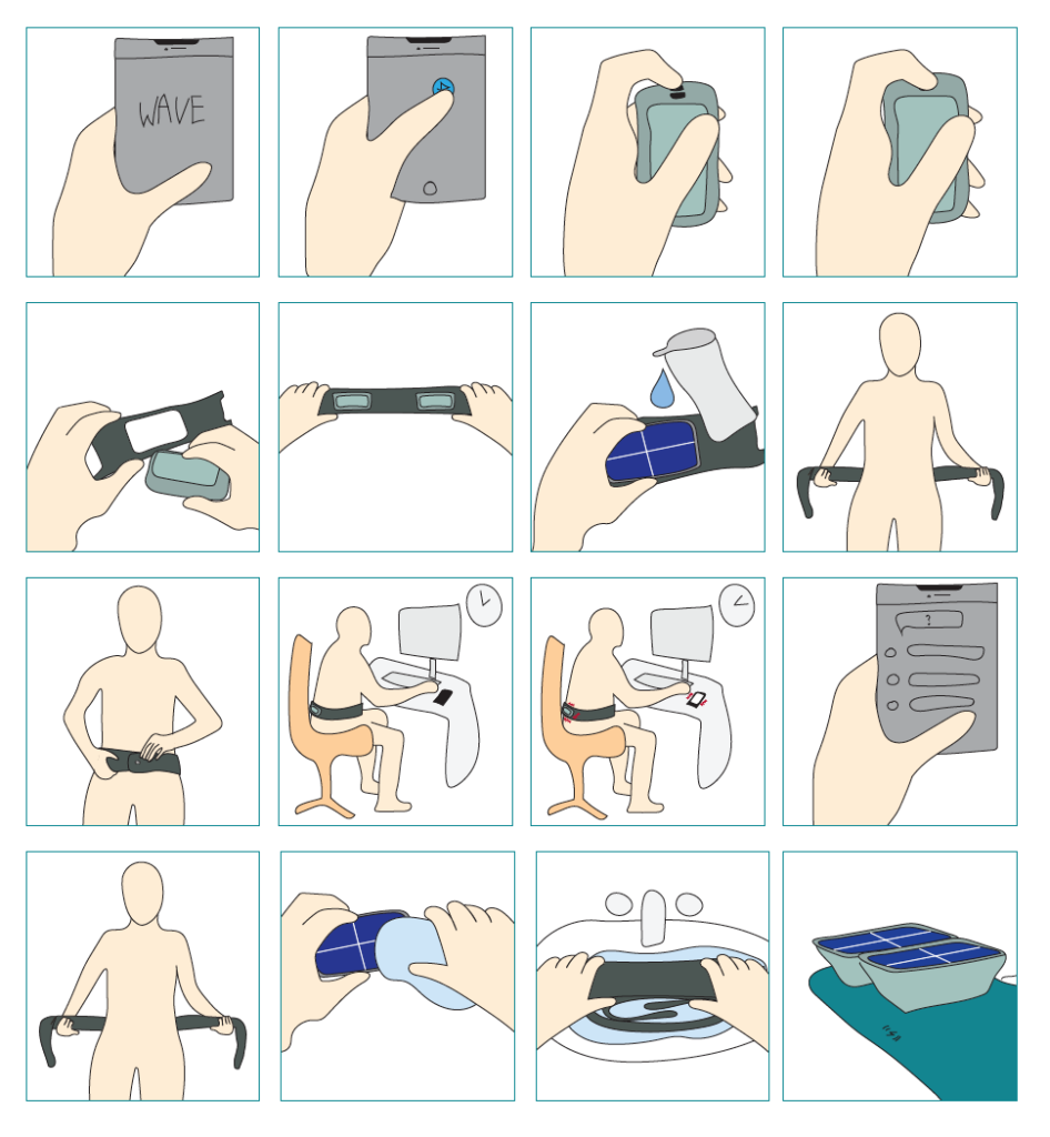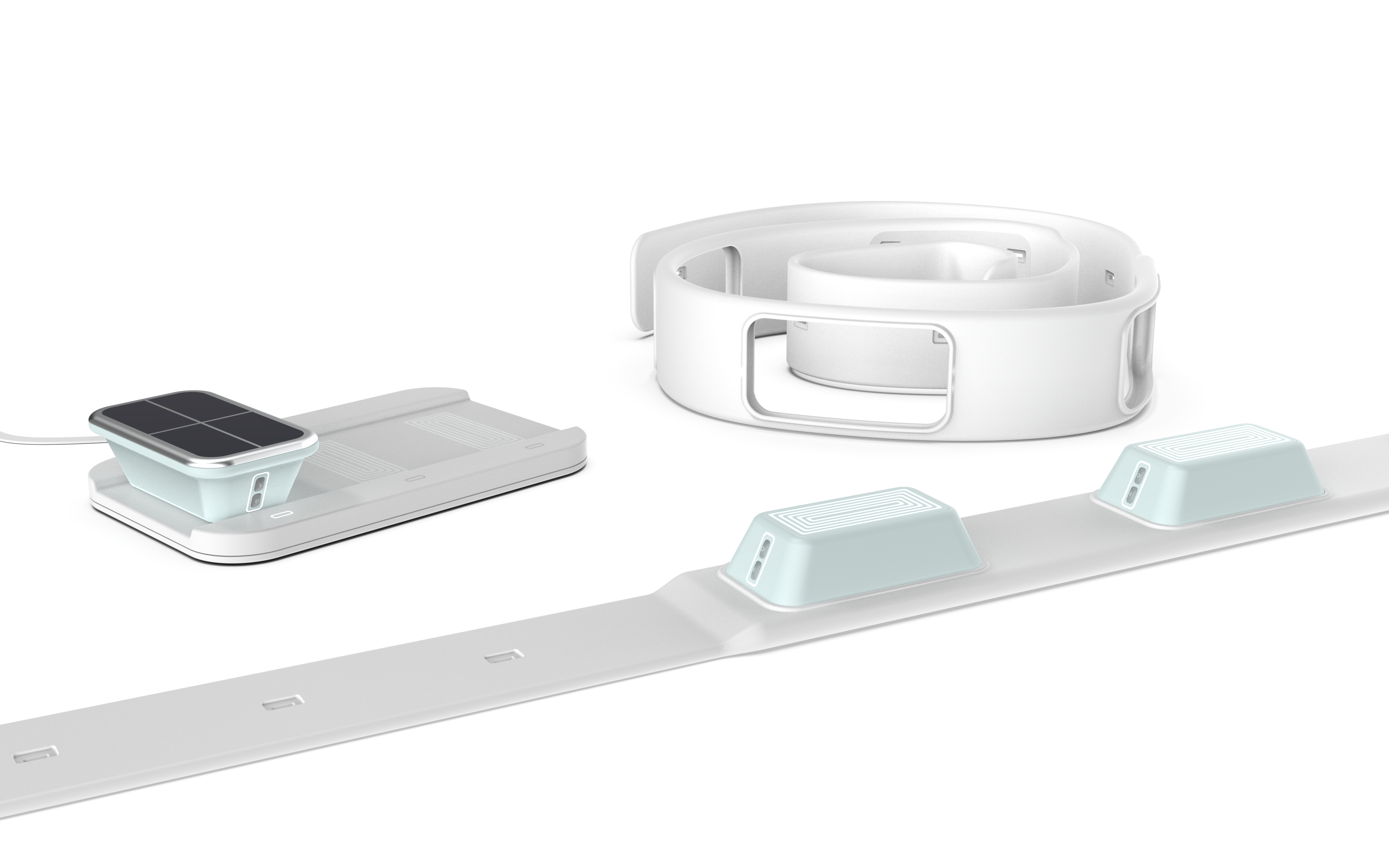 - WAVE is a portable, battery-operated ultrasound therapy device with adjustable intensities ranging from 1 to 3 MHz. Designed for easy use during daily activities, patients can operate WAVE independently. The device consists of three interconnectable ultrasound modules, a modular belt for secure placement, an inductive charging pad, and a transport case. This setup allows for convenient, wireless back treatment, enhancing patient mobility and comfort.